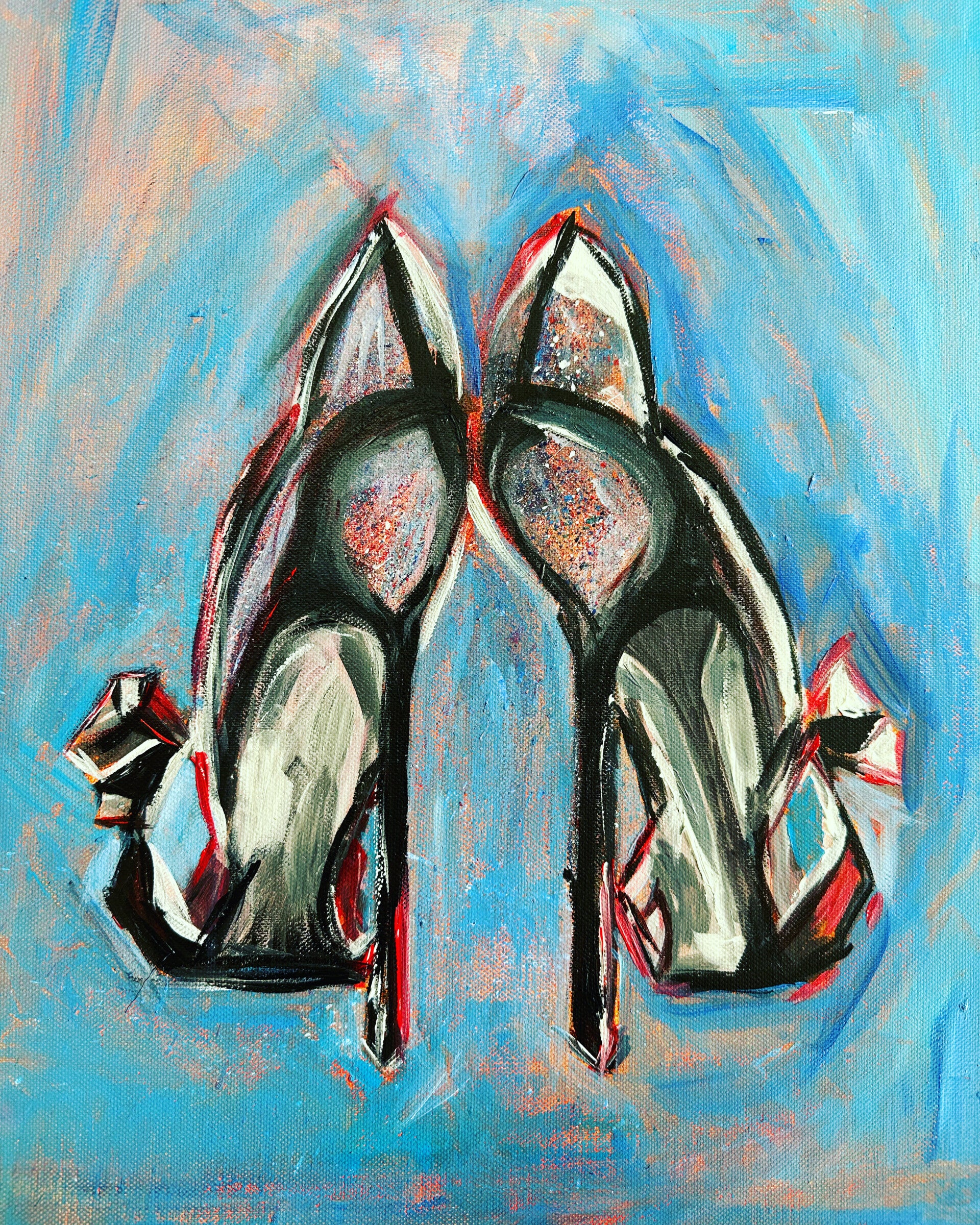 Ich hatte das Glück, Monika kennenzulernen, die sich auf Auftragsarbeiten spezialisiert hat. Ich wollte meine Lieblingspumps "verewigt" haben, die ich leider nicht mehr tragen kann. Die Idee, sie in einem Bild festzuhalten, entstanden aus einem Gespräch heraus. In vielen weiteren folgenden Gesprächen haben wir meine Wünsche bezüglich Farbvorlieben und anderen Details besprochen. Monika hat auf bezaubernde Art und Weise dieses kreative Projekt geleitet und innerhalb von wenigen Wochen umgesetzt. So, wie sie mit Materialien und Techniken umgeht, hat sie das Bild zu einem wahren Kunstwerk gemacht. Bis heute bin ich von dem Ergebnis begeistert, und das Bild hat einen besonderen Platz in meinem Zuhause gefunden. Herzlichen Dank Monika für diese wundervolle Arbeit!